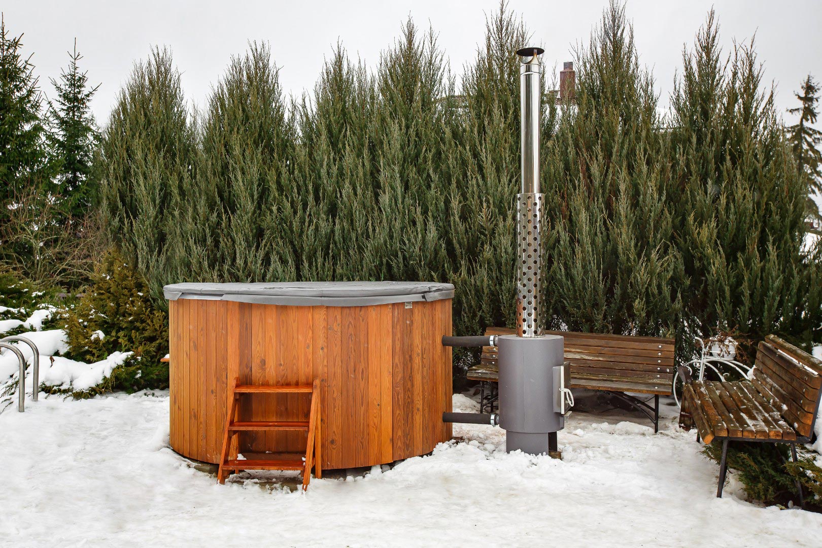 Relaks w ogrodowej balii SPA zimą - balia Wodecki